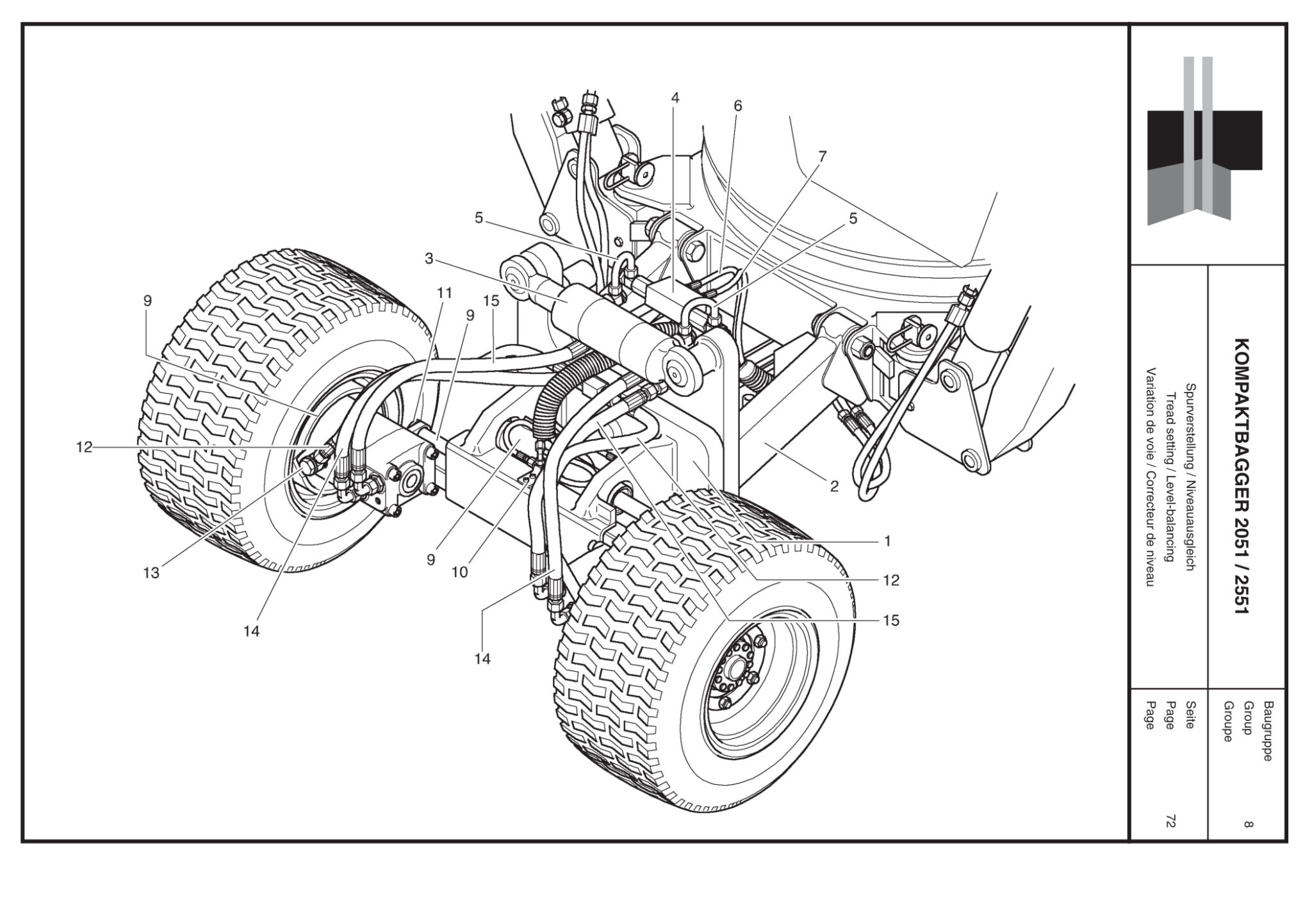 Vue éclatée pour la pelle araignée Boki 2051/2551 Tous numéros :
