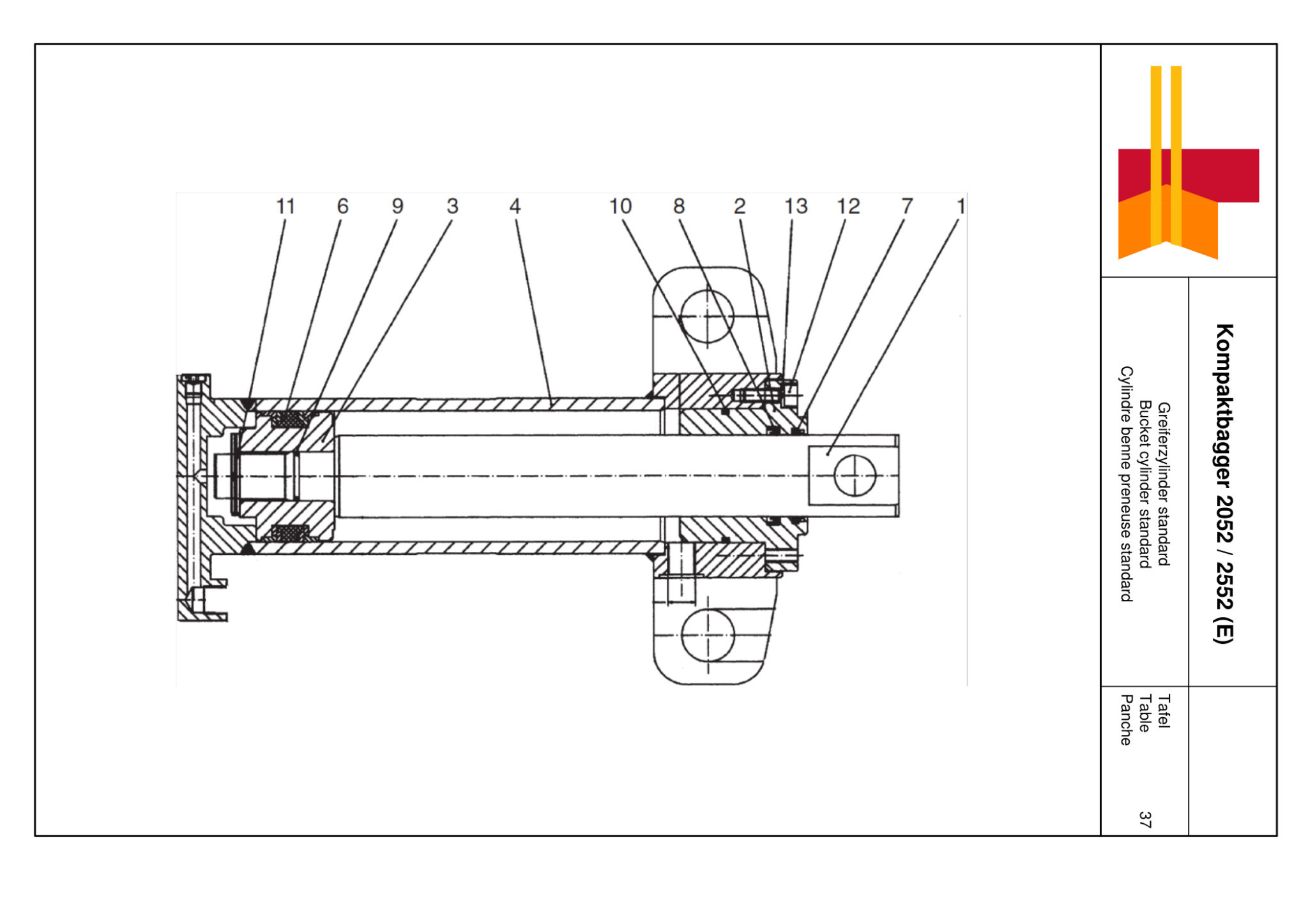 Vue éclatée pour la pelle araignée Boki 2052 / 2552 Tous numéros :