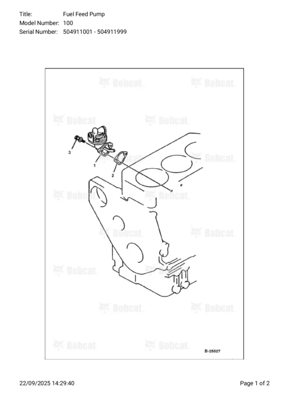 Vue éclatée pour la mini-pelle Bobcat 100 504911001 – 504911999 :